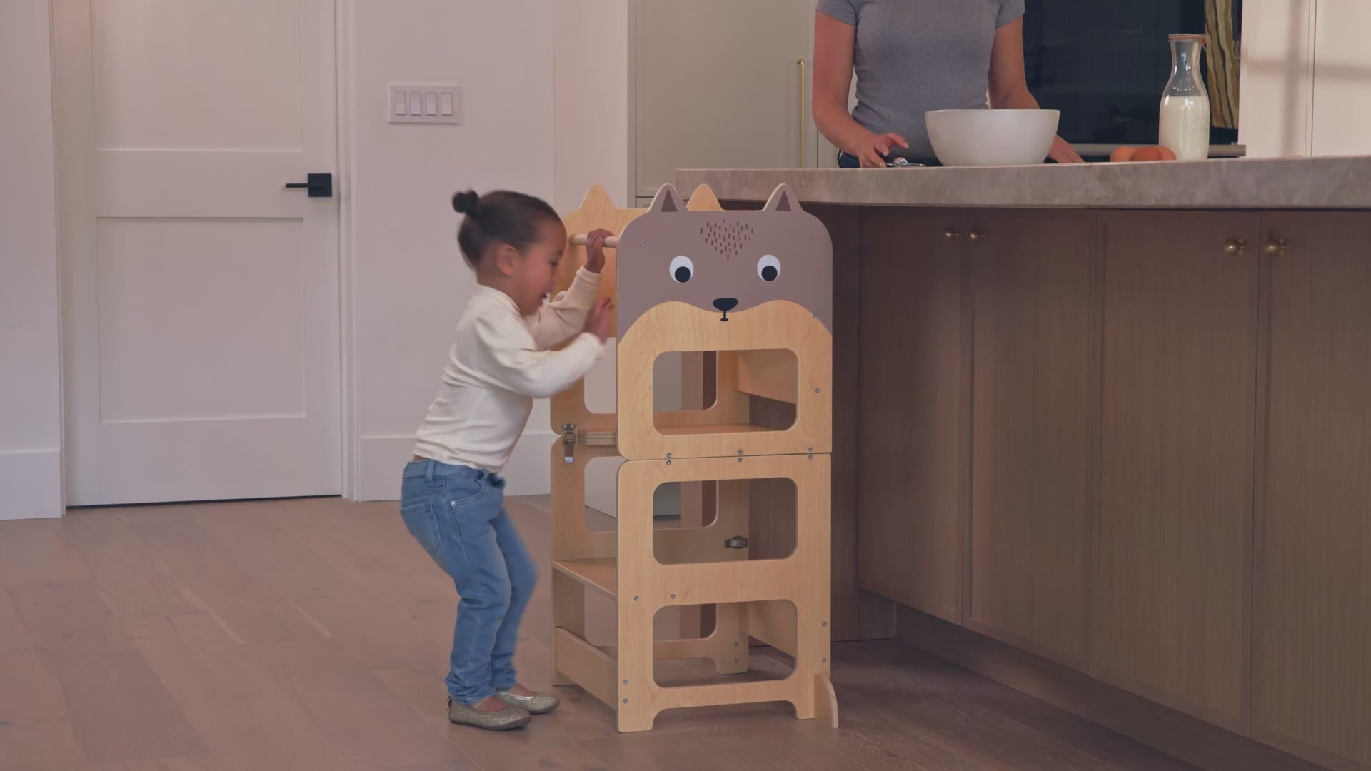 - Kitchen help tower — brings your toddler safely to counter height for cooking, baking, and handwashing